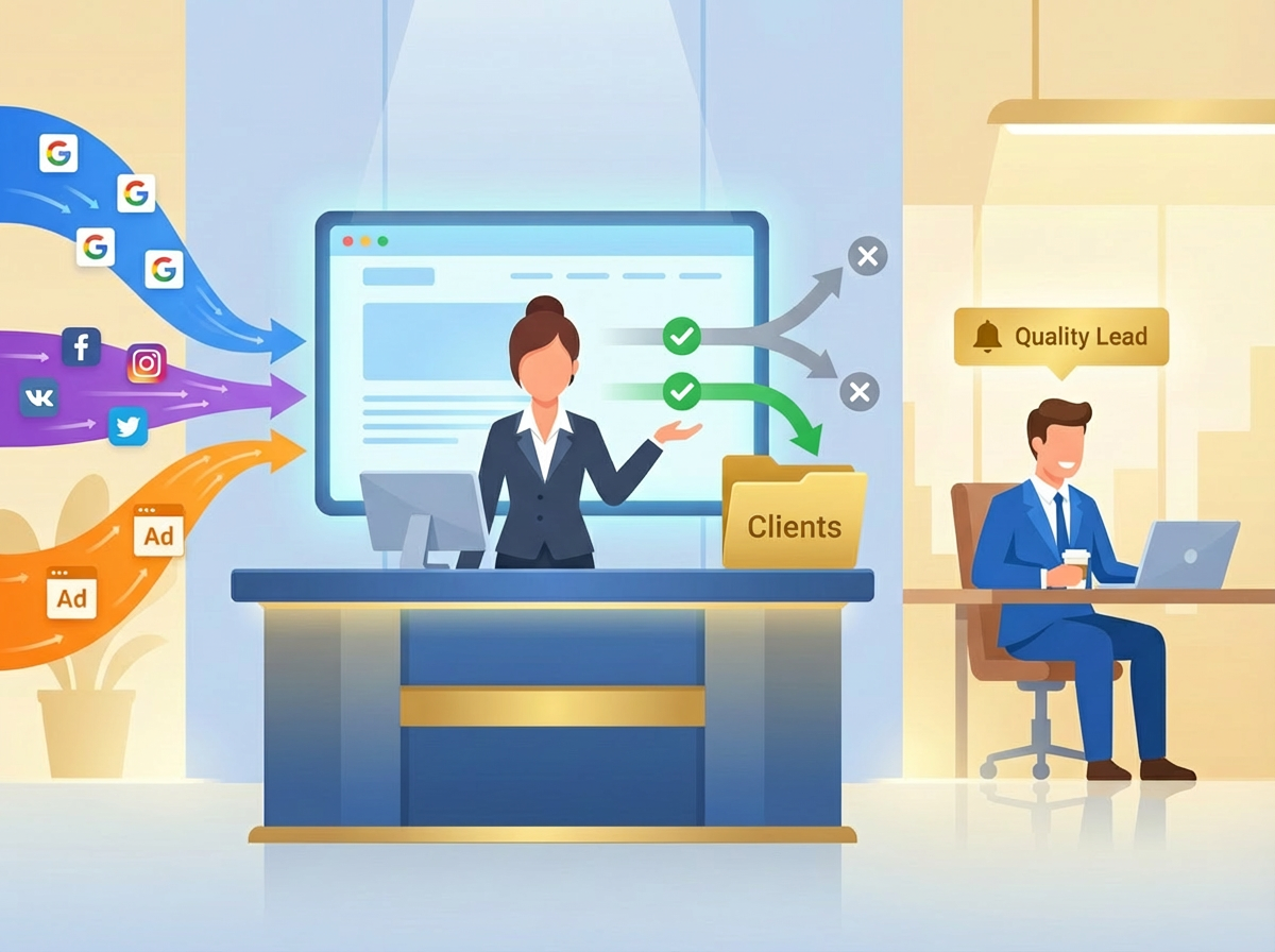 Hea veebisait eemaldab vastuväited juba enne vestlust, vastab tüüpküsimustele ja näitab näiteid. Tulemuseks on „soojad“ kliendid — inimesed, kes saavad aru, mida nad tahavad.