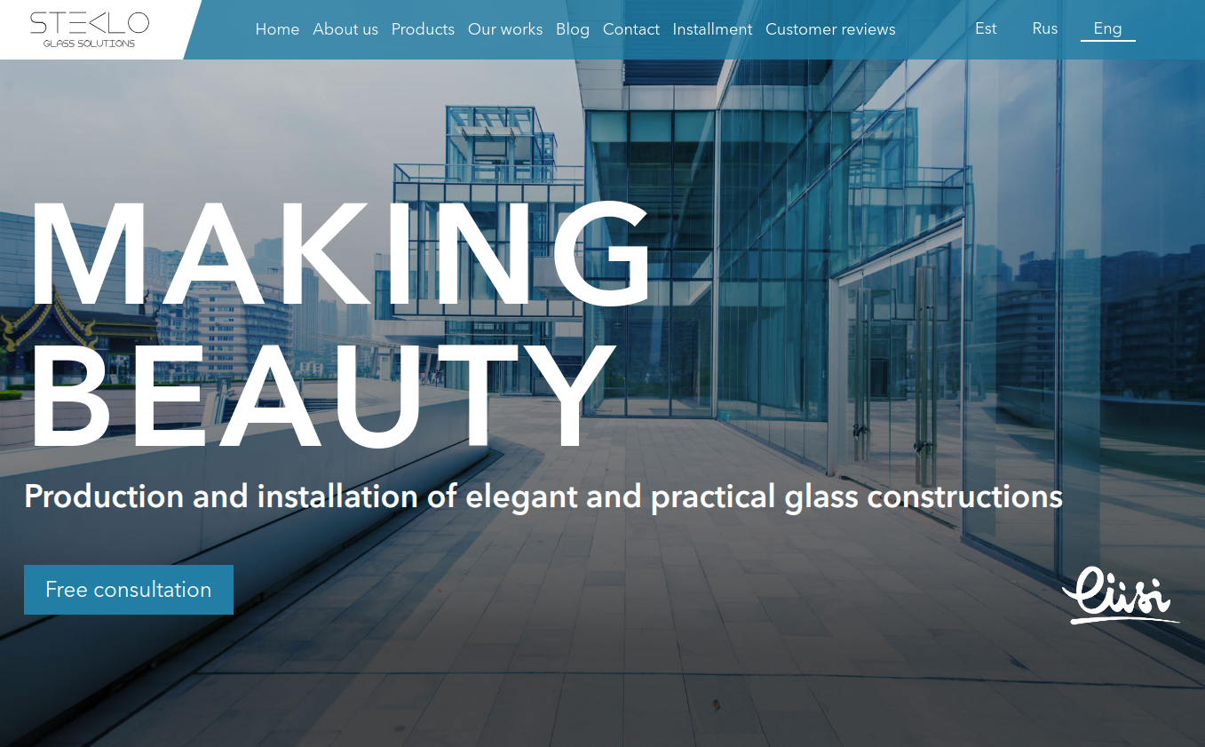A website for a company specializing in the production and installation of glass structures. For the Steklo.ee project, we created a unique and modern design that combines style and functionality. We aimed to develop a website that not only looks attractive but also works effectively to promote the brand and increase sales.